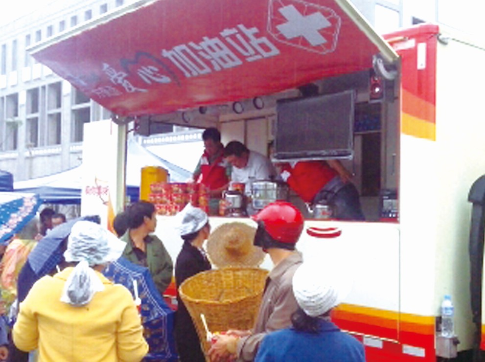 沒有休息,沒有喊苦喊累,救援小隊在經(jīng)過長達(dá)9個小時的急行軍后,立刻投入到任務(wù)之中。物資裝卸中不乏重量級設(shè)備,令人精疲力盡;道路的疏通指揮也因大批沒有救災(zāi)經(jīng)驗志愿者的涌入而令人聲嘶力竭;為當(dāng)?shù)財?shù)百高中生搭設(shè)帳篷也不是一件輕松容易的活兒;連平時在家不怎么做飯的佘仕強(qiáng)等人在震后蘆山縣卻成了掌勺師傅。在災(zāi)難中,人與人特別需要互相支持,救援小隊爆發(fā)出最大的潛力,竭盡所能地幫助災(zāi)區(qū)同胞。