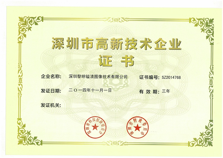 發(fā)布日期:2015/1/19 18:55:07 | 瀏覽次數(shù):7107 來源:特發(fā)黎明鎰清公司 張志彬近日,深圳黎明鎰清圖像技術有限公司獲得由深圳市科技創(chuàng)新委、深圳市財政委聯(lián)合頒發(fā)的《高新技術企業(yè)證書》,標志著黎明鎰清正式通過了深圳市高新技術企業(yè)認定,成為深圳市級高新技術企業(yè)。
