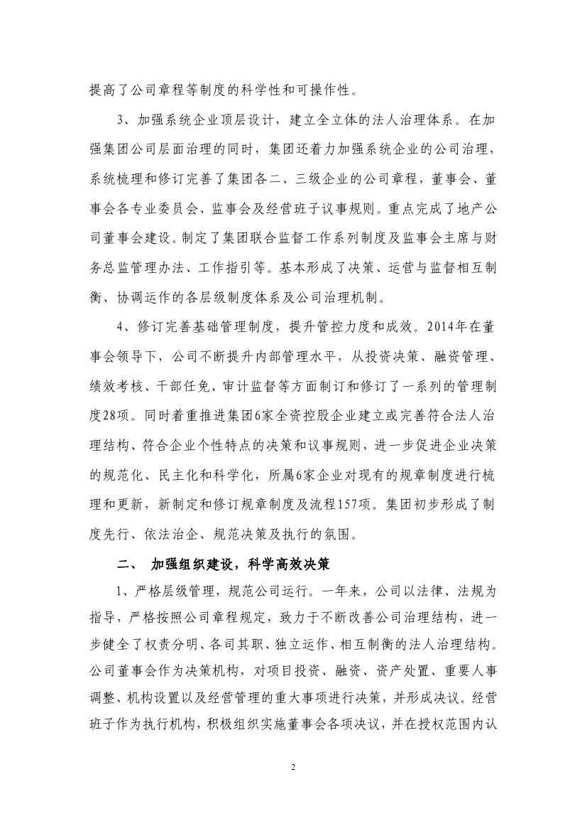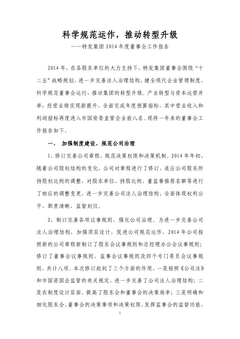 特發(fā)集團2014年度董事會工作報告