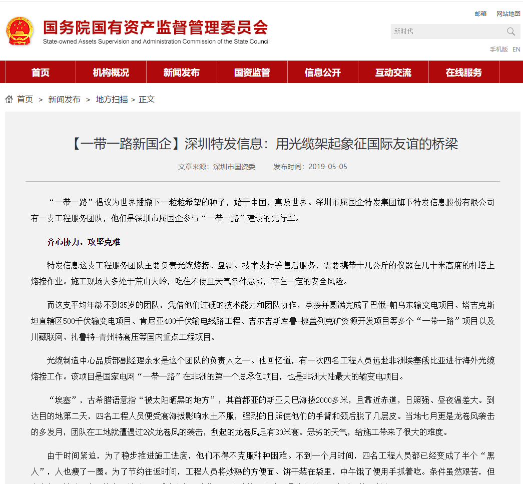 為一帶一路做貢獻!國務院國資委官網(wǎng)報道特發(fā)集團啦!