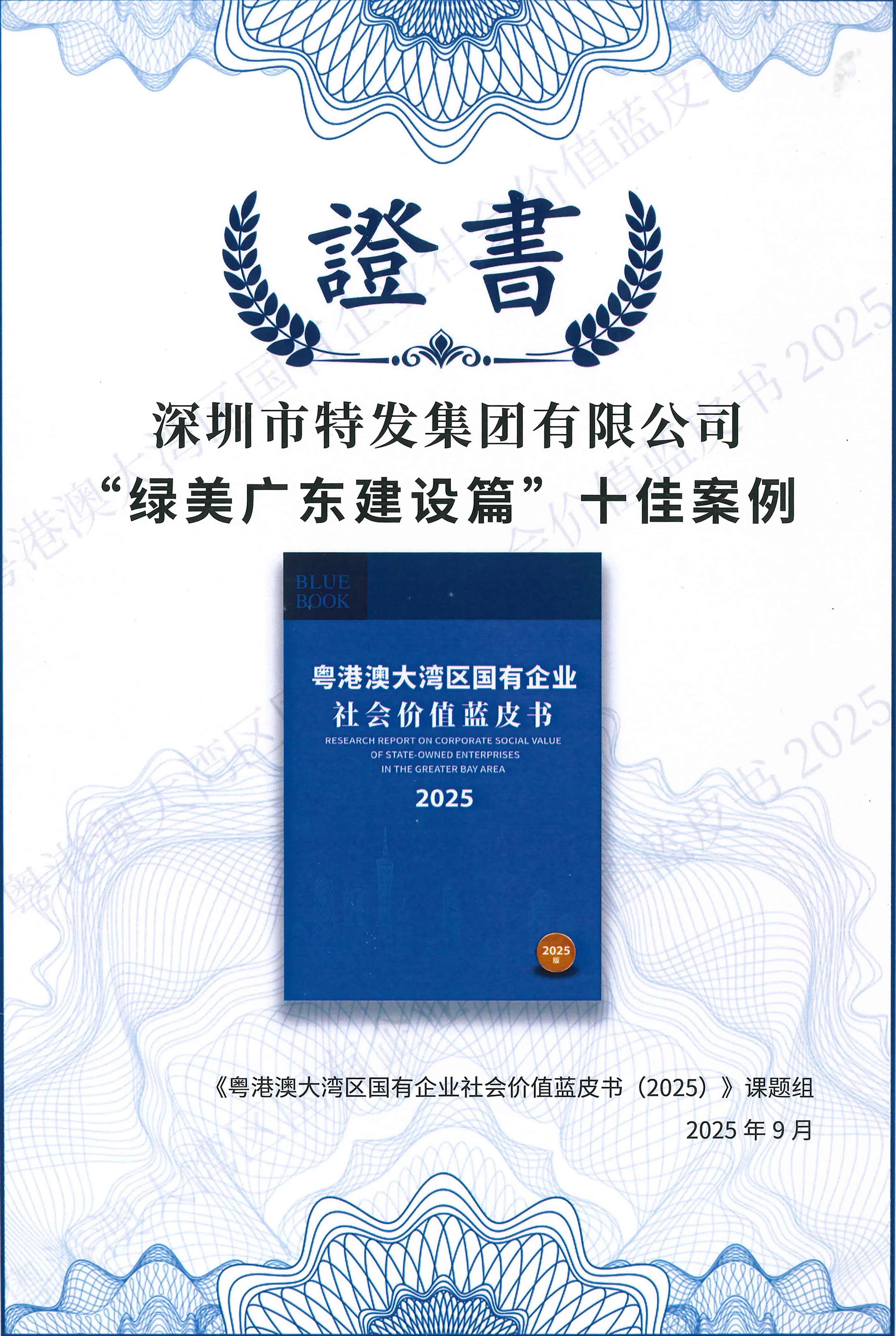 會(huì)上,特發(fā)集團(tuán)申報(bào)的《踐行綠色低碳理念 以科技創(chuàng)新驅(qū)動(dòng)企業(yè)高質(zhì)量可持續(xù)發(fā)展》案例,成功入選由廣東省國(guó)資委發(fā)布的《粵港澳大灣區(qū)國(guó)有企業(yè)社會(huì)價(jià)值藍(lán)皮書 (2025)》“綠美廣東建設(shè)篇”十佳案例。