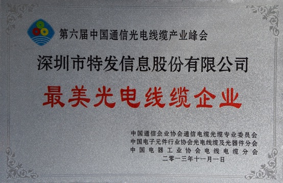會議表彰了10家“中國最美光電線纜企業(yè)”和22名“中國最美光電線纜人”。特發(fā)信息被評為最美光電線纜企業(yè),特發(fā)信息光纜分公司陸秉義總經(jīng)理和張偉民副總經(jīng)理當選最美光電線纜人。